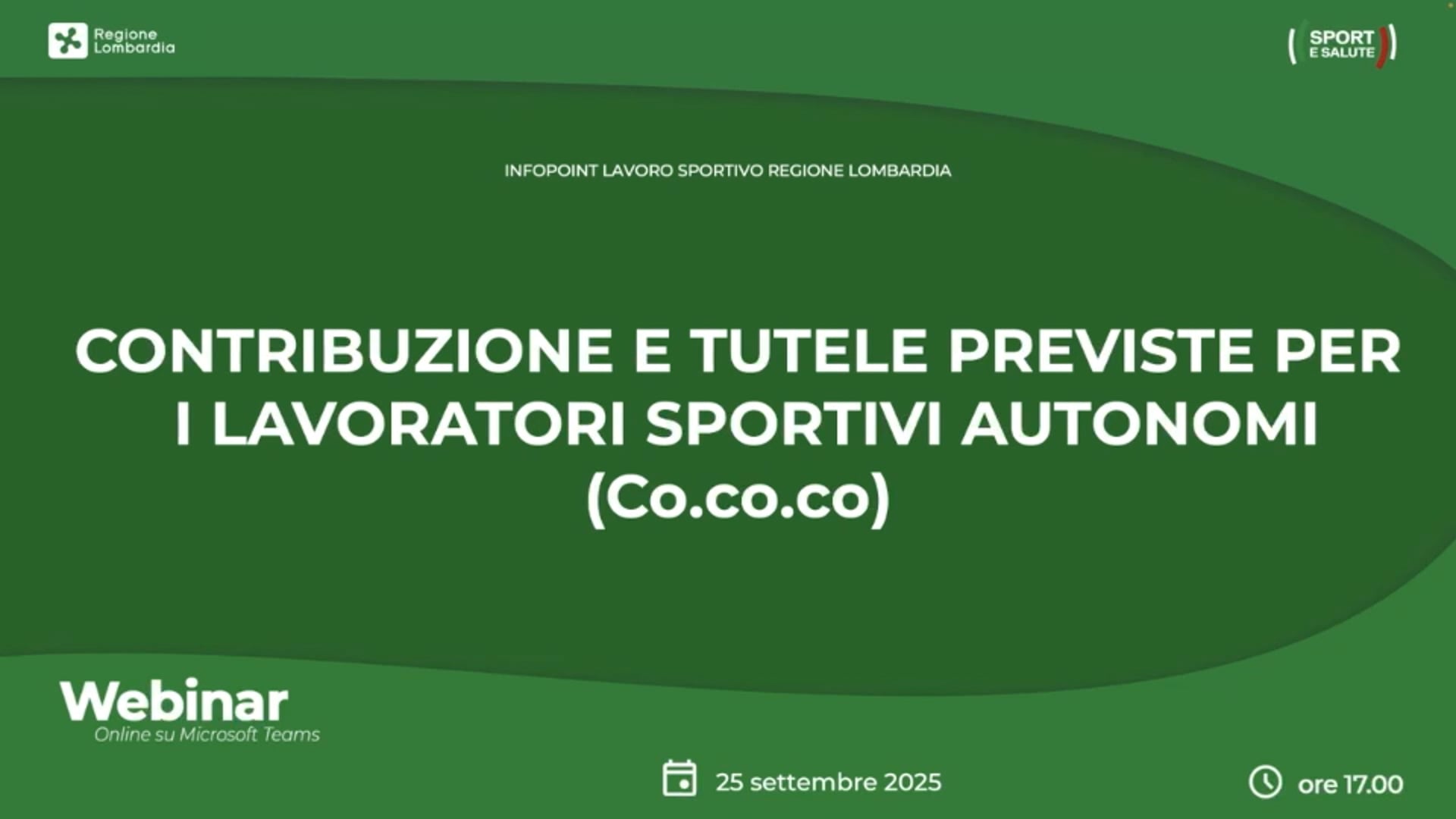 La Regione Lombardia, in collaborazione con la società Sport e Salute S.p.A, mette a disposizione degli operatori del sistema sportivo lombardo un Helpdesk – Infopoint di supporto istituzionale dedicato al lavoro sportivo, volto a fornire una linea interpretativa uniforme degli adempimenti previsti dalla normativa con particolare focus su: contrattualistica sportiva e adempimenti per lavoratori sportivi; questioni giuslavoristiche; tutele dei lavoratori sportivi, sicurezza sul lavoro (d. lgs. 81/2008); volontari sportivi; adempimenti da gestire attraverso il Registro Nazionale delle Attività Sportive Dilettantistiche (RASD).